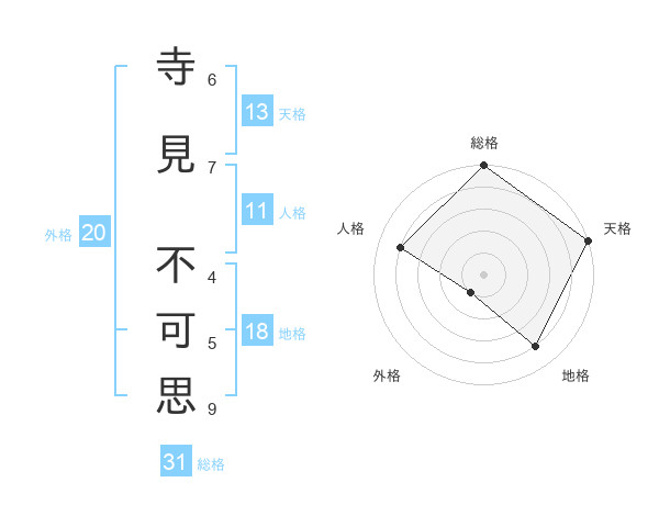 寺見 不可思さんを姓名の画数から五運を鑑定