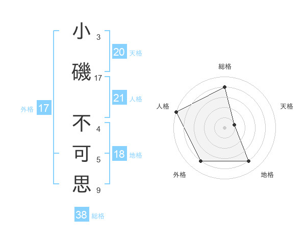 小磯 不可思さんを姓名の画数から五運を鑑定