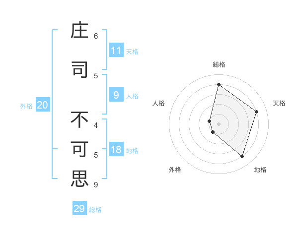 庄司 不可思さんを姓名の画数から五運を鑑定