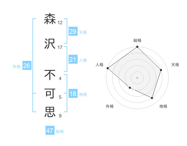 森沢 不可思さんの総格は47画の5点!