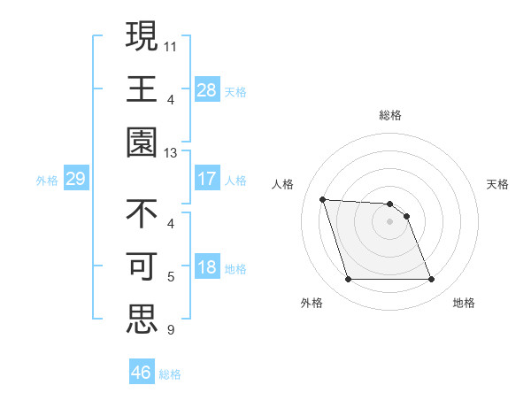 現王園 不可思さんの総格は46画の1点!