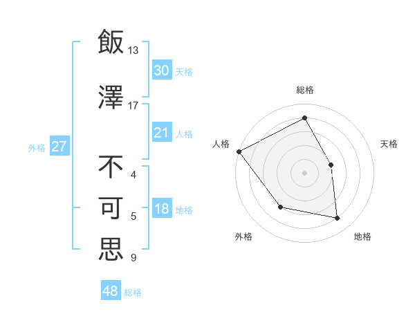 飯澤 不可思さんの外格は27画の3点!