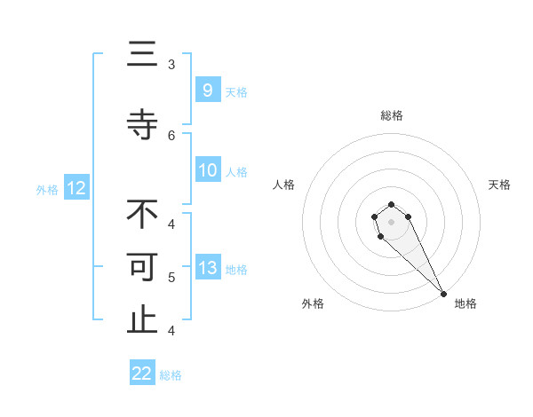 三寺 不可止さんを姓名の画数から五運を鑑定