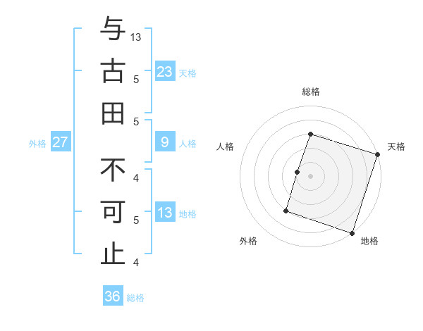 与古田 不可止さんを姓名の画数から五運を鑑定