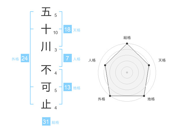 五十川 不可止さんを姓名の画数から五運を鑑定