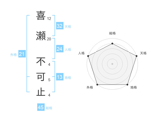 喜瀬 不可止さんを姓名の画数から五運を鑑定