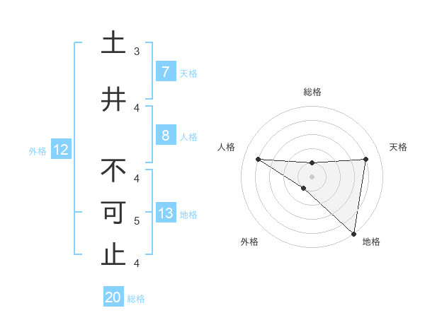 土井 不可止さんの地格は13画の5点!