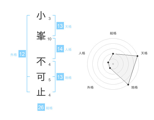 小峯 不可止さんの地格は13画の5点