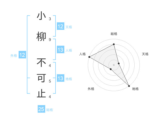 小柳 不可止さんの天格は12画の1点!
