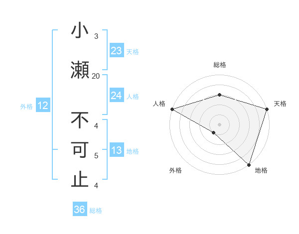 小瀬 不可止さんを姓名の画数から五運を鑑定