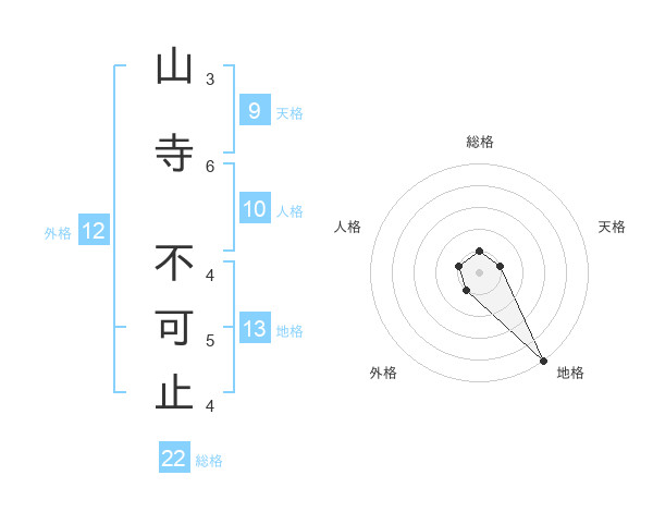 山寺 不可止さんの総格は22画の1点!