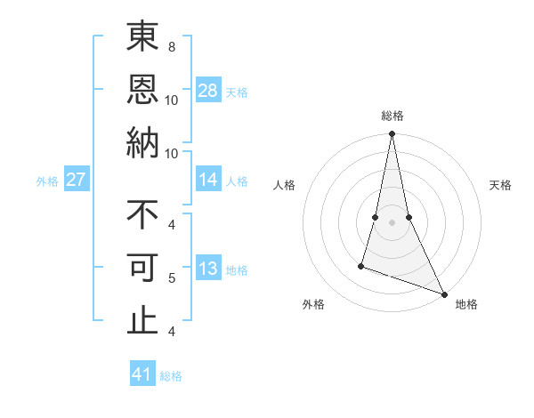 東恩納 不可止さんを姓名の画数から五運を鑑定