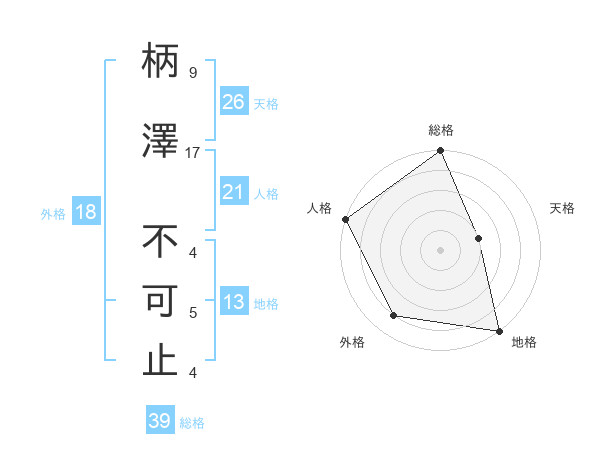 柄澤 不可止さんを姓名の画数から五運を鑑定
