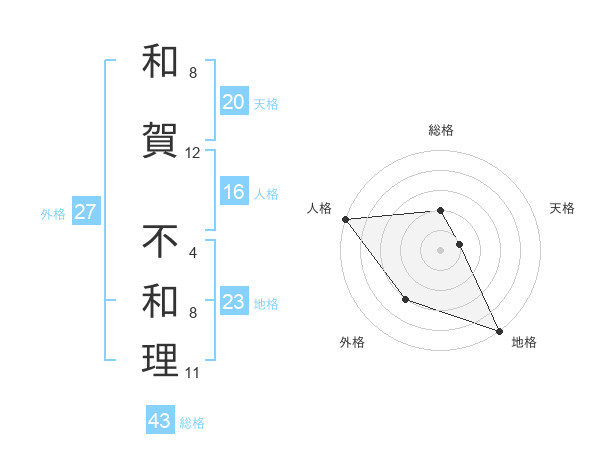 和賀 不和理さんの天格は20画の1点!