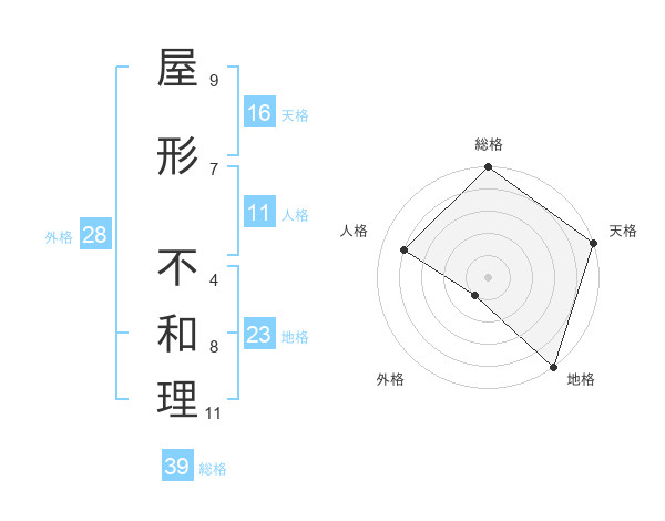 屋形 不和理さんを姓名の画数から五運を鑑定