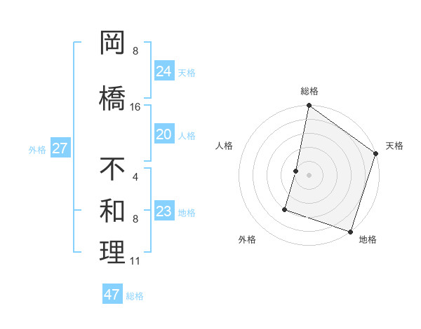岡橋 不和理さんの総格は47画の5点!
