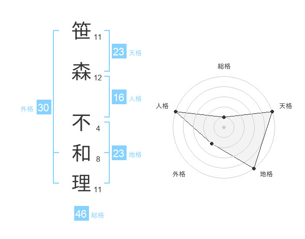 笹森 不和理さんを姓名の画数から五運を鑑定