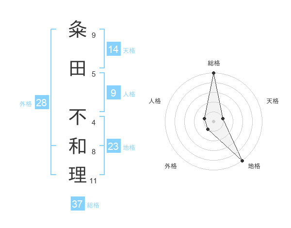 粂田 不和理さんの総格は37画の5点!