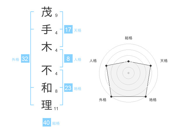 茂手木 不和理さんの外格は32画の5点!