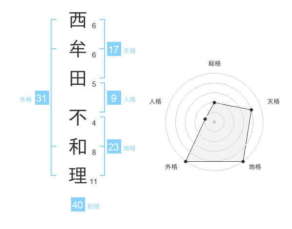 西牟田 不和理さんの外格は31画の5点!