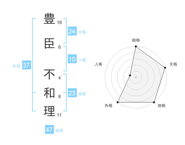 豊臣 不和理さんを姓名の画数から五運を鑑定