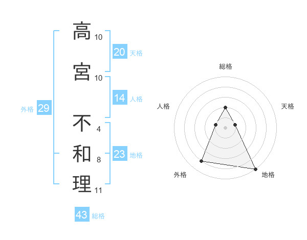 高宮 不和理さんの総格は43画の2点!