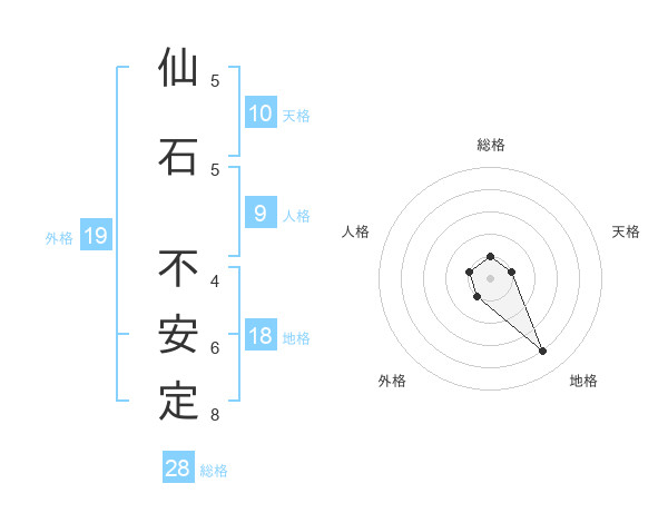 仙石 不安定さんの総格は28画の1点!