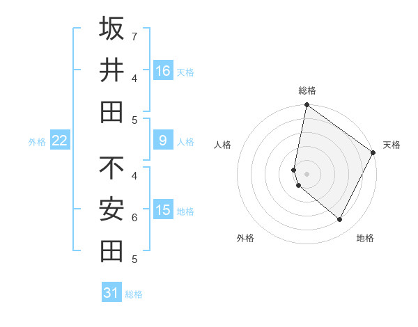 坂井田 不安田さんの総格は31画の5点