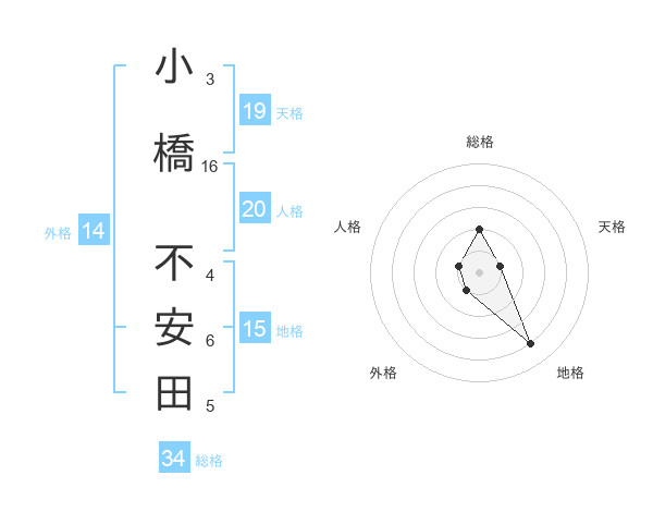 小橋 不安田さんを姓名の画数から五運を鑑定