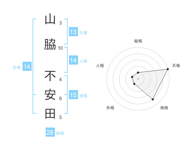 山脇 不安田さんを姓名の画数から五運を鑑定