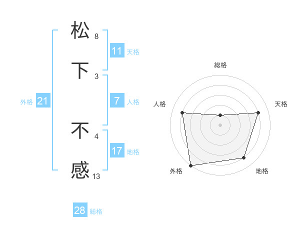 松下 不感さんの外格は21画の5点!