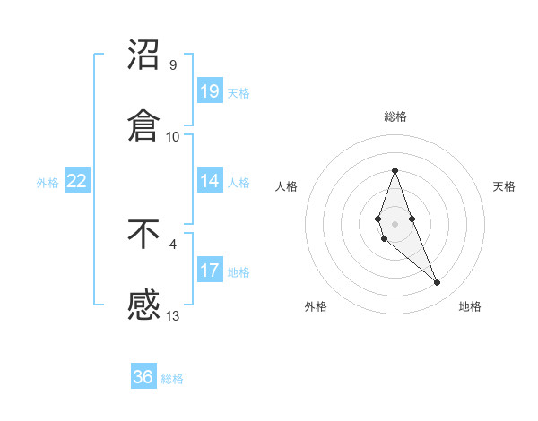 沼倉 不感さんを姓名の画数から五運を鑑定