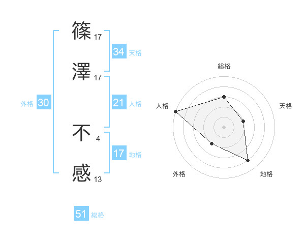 篠澤 不感さんの総格は51画の3点!