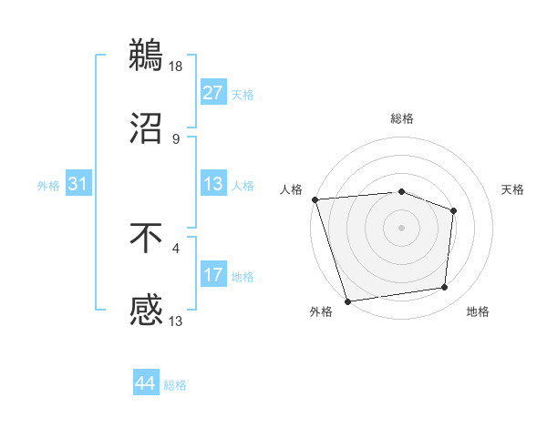 鵜沼 不感さんを姓名の画数から五運を鑑定