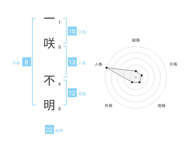 一咲 不明さんの総格は22画の1点!