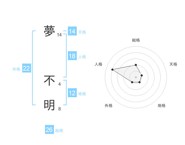 夢 不明さんの総格は26画の2点!