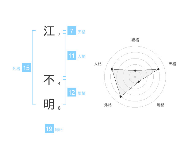 江 不明さんの総格は19画の1点!
