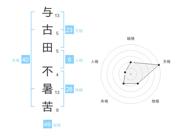 与古田 不暑苦さんを姓名の画数から五運を鑑定