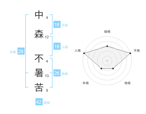 中森 不暑苦さんを姓名の画数から五運を鑑定