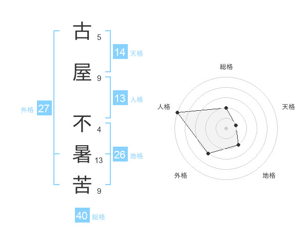 古屋 不暑苦さんを姓名の画数から五運を鑑定