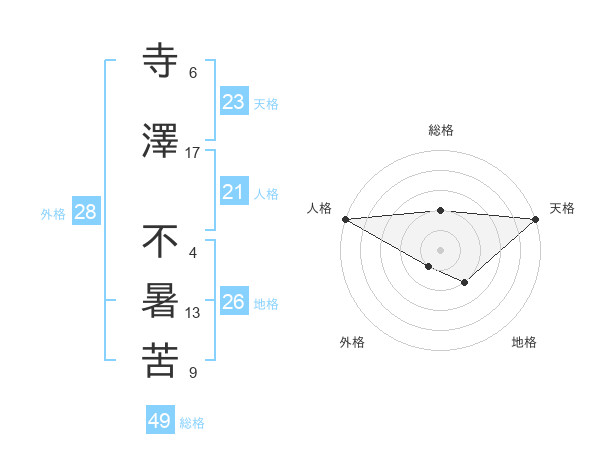寺澤 不暑苦さんの名前の鑑定結果は!