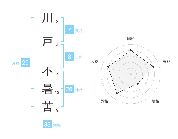 川戸 不暑苦さんを姓名の画数から五運を鑑定