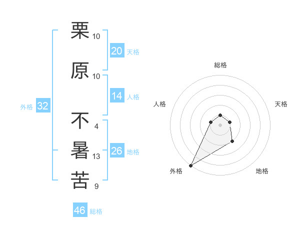 栗原 不暑苦さんを姓名の画数から五運を鑑定