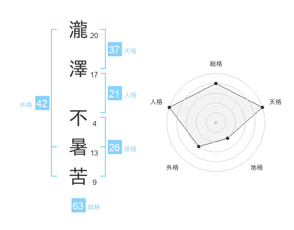 瀧澤 不暑苦さんを姓名の画数から五運を鑑定