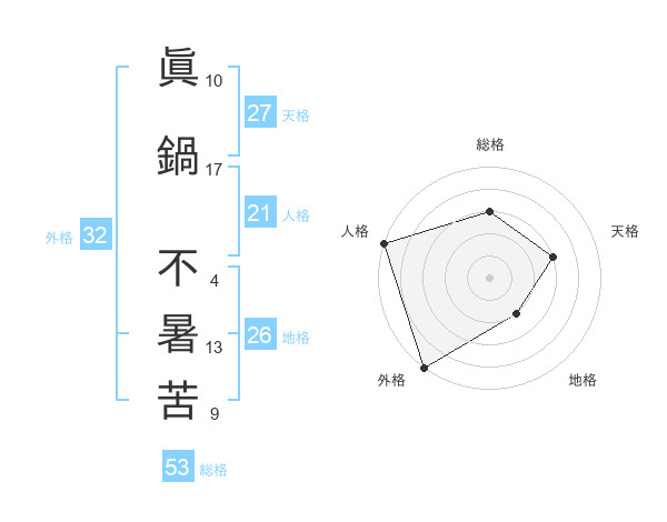眞鍋 不暑苦さんの名前の鑑定結果は!
