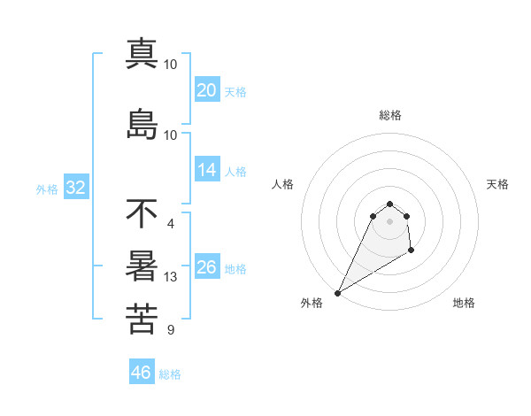 真島 不暑苦さんの総格は46画の1点!