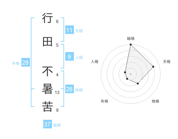 行田 不暑苦さんを姓名の画数から五運を鑑定