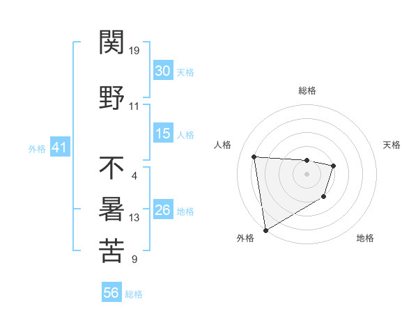 関野 不暑苦さんを姓名の画数から五運を鑑定