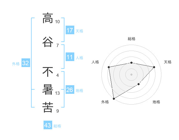 高谷 不暑苦さんを姓名の画数から五運を鑑定