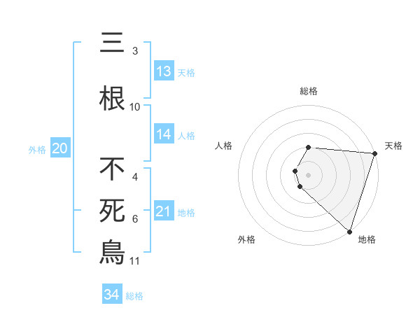 三根 不死鳥さんの地格は21画の5点!